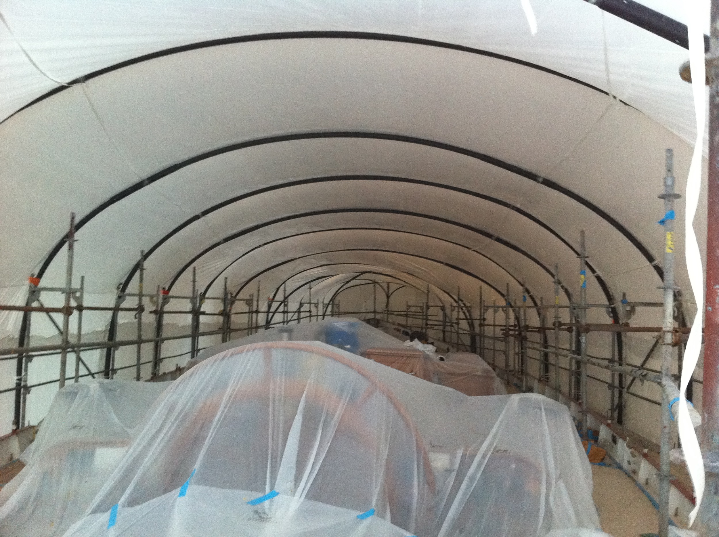 Shrink wrapping is used for winterizing, dry marinas, controlled environment during reconstruction or repairs of vessels, painting and temporary shelters for service.
